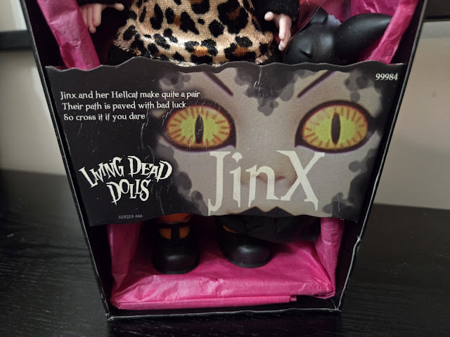 Jinx is right after Calico. She's very sweet and classically Halloween, and lands in the niche of cartoony pseudo-1960s dolls I love, right alongside Sadie and Lottie.