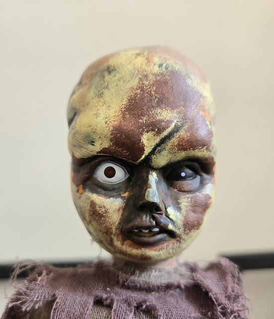 This is just a quick wrap-up of dolls I left in limbo. It's a good time to post these because my Damien project is being held up by a desk I ordered being caught in limbo, and I might have to get a refund if the seller doesn't respond and confirm it's being shipped soon. Theirs looked like the perfect prop for the dolls, too. Fingers crossed it works out.